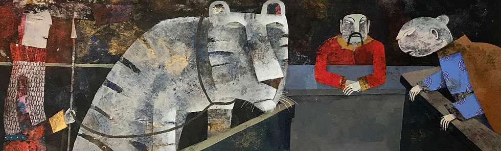 “Raised with comics, Playmobil and company ... As a child, I spend my life drawing, cutting, gluing, tinkering with paper and cardboard. A little taller ... I draw again and again, critters always, I'm a bit monomaniac! Much larger, as I still draw, I dare not imagine that it could become my "real" job and yet after a passage at the Olivier de Serres School, I illustrate my first book ... I mainly use the acrylic paint mixed with a small kitchen of which I have the secret, based on torn, cut, scratched, pasted, repainted recycled papers ... It is above all that I love the contact with materials, the part left to the surprise of chance, too.